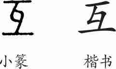 “互”是象形字。小篆像古代收丝或绳的器具之形。为了防止丝、绳脱散,两根横棍并不平行,而是成十字向,故收起的丝或绳成交错状。隶变后楷书写作“互”。