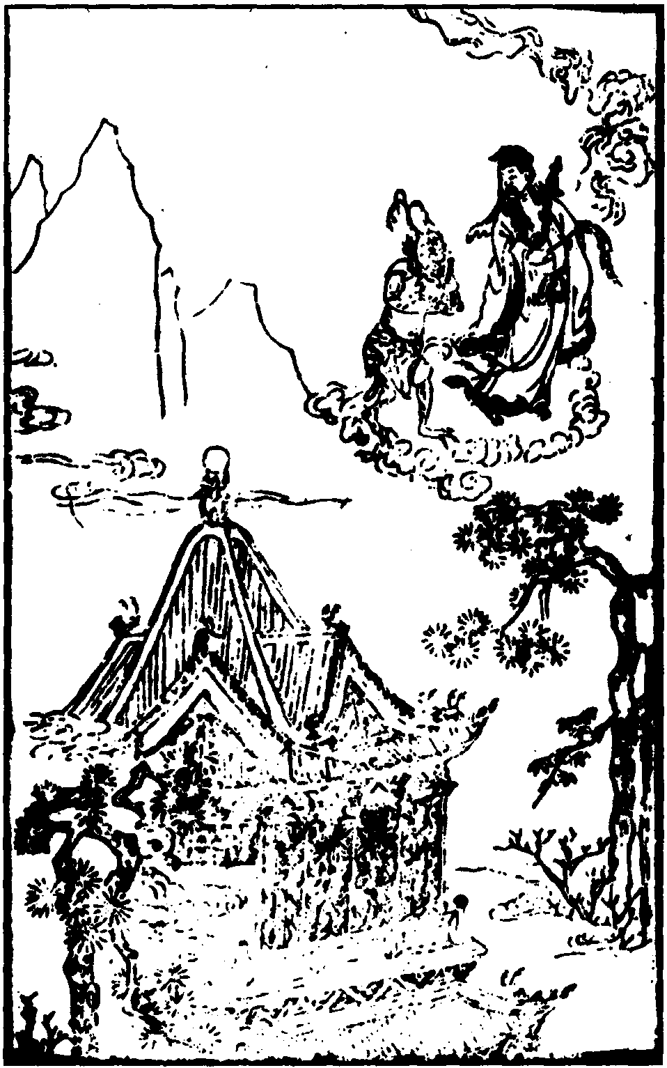 《黄鹤楼》 只有一折,写吕洞宾和柳树精互相问答的故事。吕洞宾是传说中的八仙之一,《鹤林玉露》、《风土记》 等书记载有他的事迹,元杂剧中有 《吕纯阳点化度黄龙》,明末拟话本 《醒世恒言》中有 《吕洞宾飞剑斩黄龙》,都以吕洞宾为题材。关于柳树精,明清之际无名氏传奇 《万仙录》 写吕洞宾某日入酒肆饮酒,城南柳树精化为酒色财气诸魔来迷惑他; 仙人云房来酒肆中度脱吕洞宾,吕洞宾未能醒悟,云房就先化为柳树精离去。《黄鹤楼》 则写吕洞宾游武昌黄鹤楼,和柳树精相遇,入座交谈,作者只是借取传说中的柳树精之名作为提问者,让吕洞宾在回答问题时阐发神仙之道,或者澄清民间关于他的传说中对他的误解。开始,柳树精问吕洞宾,神仙苦不苦,苦在何处。吕洞宾回答说,神仙比凡人还要苦,苦在要遭受许多劫难,五百年一风劫,五百年一火劫。柳树精又问,怎样脱过劫难,吕洞宾以他曾帮助某书生解脱劫难的事例作回答。这里所选的五支曲子,是吕洞宾回答那些关于民间传闻中的一些问题时所唱。