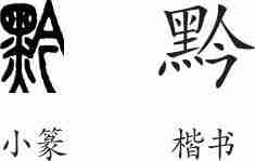 “黔”是形声字。小篆从黑,今声。隶变后楷书写作“黔”。