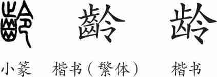 “龄”是形声字。小篆从齒,令声。隶变后楷书写作“齡”。汉字简化后写作“龄”。