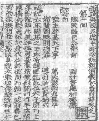 清代白话长篇英雄传奇小说。全称《异说五虎平西珍珠旗演义狄青前传》,一名《狄青演义》。十四卷一百十二回。不题撰人。成书于清嘉庆六年(1801)。