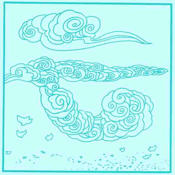 也有一些“云”是眼睛看不见的,如“疑云”。还有“战云”是用来比喻战争的气氛,可以说“战云密布”。这些看不见的抽象的云指的是一种心境或氛围。