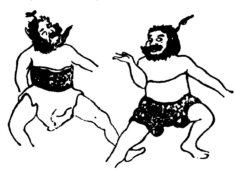 秦朝时的角力活动开展较为广泛,各民族间的交往使得不同风格的角力方式得到了交流与融汇。此时期的“角力”改称为“角抵”,成为一种供宫廷欣赏的表演,称之为“角抵戏”,当时秦二世胡亥特别爱看角抵,经常在甘泉宫观看“角抵戏”,而且看戏时特别专心,谁也别想打扰他。《史记·李斯列传》谓秦二世“在甘泉方作角抵优俳之观”。到了西汉时期,角抵戏的内容不断增加,发展成融角力、杂技、歌舞、魔术等各种娱乐形式为一体的大型综合性表演。角力一项仍是颇受喜爱的一种表演,特别是汉哀帝对角力表演情有独钟(《汉书·哀帝纪》)。秦汉时代角力风格多样,后世的摔跤、相扑等都能在此时找到雏形。1975年出土于湖北江陵凤凰山秦墓中木篦上的漆画《摔跤图》中的摔跤方式是无固定抱法,可采用击、打、摔、拿等动作手法,吉林集安洞沟出土的东汉时期的高句丽角力图则别具风格。图是在墓内主室右壁上:两名赤裸仅着短裤的角力者在大树下交首相搏,右侧一白发长髯老翁倚杖观看。虽然此图上人物穿着与凤凰山角力者基本一致,但所采用的是固定的搂抱方式,双方均用双手搂对方的腰,与后世的相扑的抱法完全一样。不同的角力方式不仅仅局限于民族间的交往,还有许多不同国家、不同流派也相互交流。晋武帝司马炎时,从西域来了一位精于摔跤的胡人,所向披靡,晋武帝广招勇士,最后招到勇力无比的庾东,与胡人激烈搏斗,将其摔死(《晋书·庾阐传》)。由于摔跤开展广泛,成为酒宴庆典、招待宾朋时的一项不可缺少的表演内容,南北朝时宫廷卫队中就出现了接受专门训练的“角抵队”。(《隋书·礼仪志七》)隋朝建国后,角抵大戏继续受到人们的喜爱。隋炀帝在位时(605~617)进而组织举办全国性角抵会演,虽有奢侈糜费,并以此向邻国使者宣扬声威,但从另一个侧面,反映了隋代角抵戏的普及与发展。