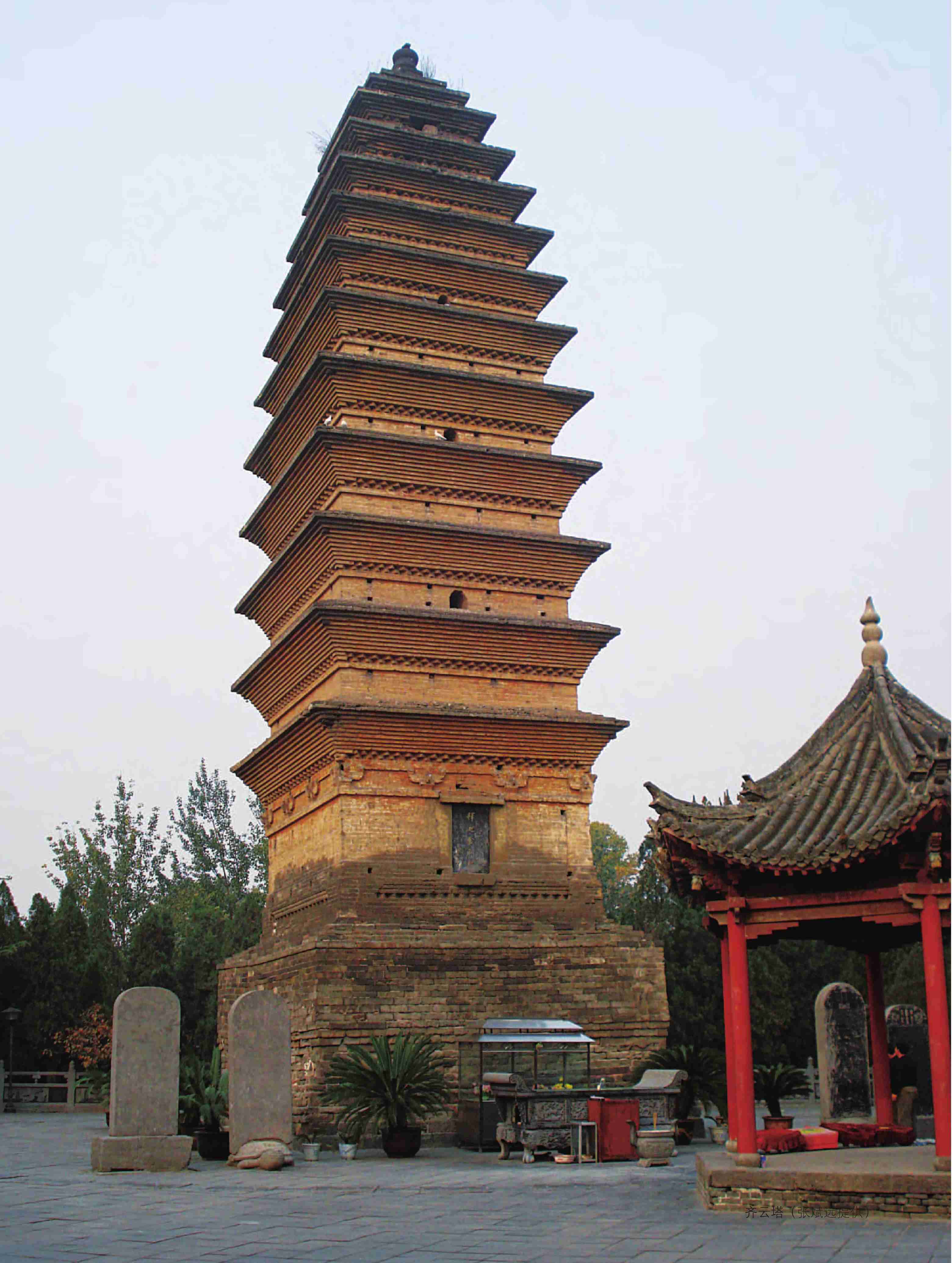主院之东,另有塔院一区,正中有砖塔,名曰“齐云”,是金代密檐塔的代表作,亦是国内罕见的回音建筑。