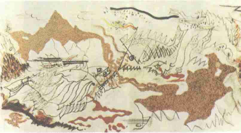 鱼战(油画加沙复合媒体) 1926年 〔法〕安德烈·马松