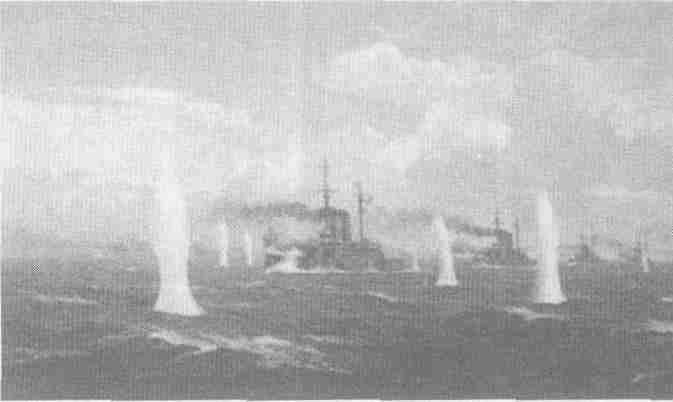 905年俄国波罗的海舰队向日本舰队发射炮火的情形