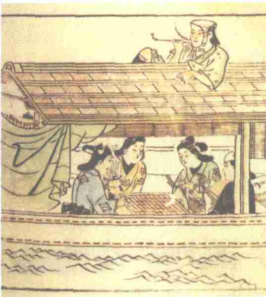 河舫宴会图 (彩色木刻板画) 1683年 〔日〕菱川师宣 |