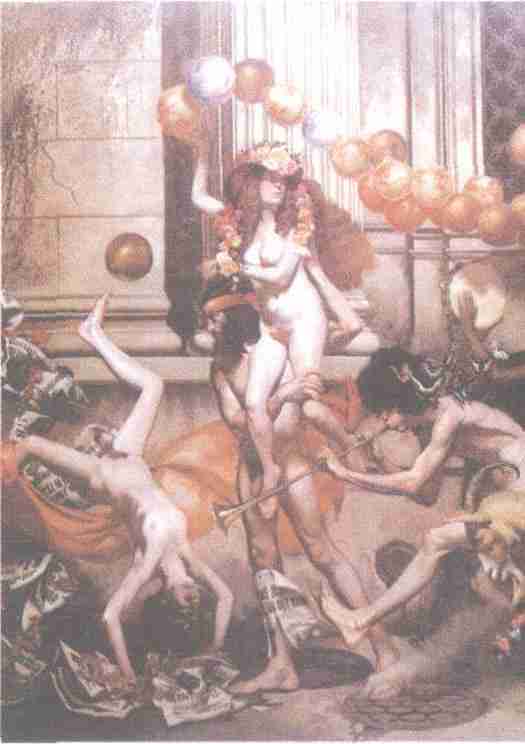 杂耍行列(油画)〔美〕哈维·狄纳斯汀