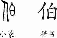 “伯”是形声字。小篆从人,白声。隶变后楷书写作“伯”。