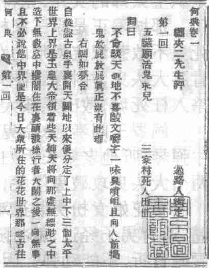 清代白话长篇讽谕小说。又名《十一才子书鬼话连篇录》。十回。题“缠夹二先生评,过路人编定”,一本又题“上海张南庄先生编,茂苑陈得仁小舫评”。张南庄是清乾隆、嘉庆时高才不遇的布衣,生平不详。成书于清嘉庆年间。