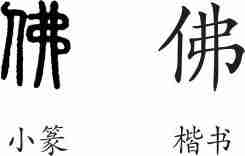 “佛”是形声字。小篆从人,弗声。隶变后楷书写作“佛”,并出现多个异体字。如今规范化,以“佛”为正体。