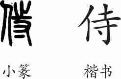 “侍”是形声字。小篆从人,寺声。隶变后楷书写作“侍”。