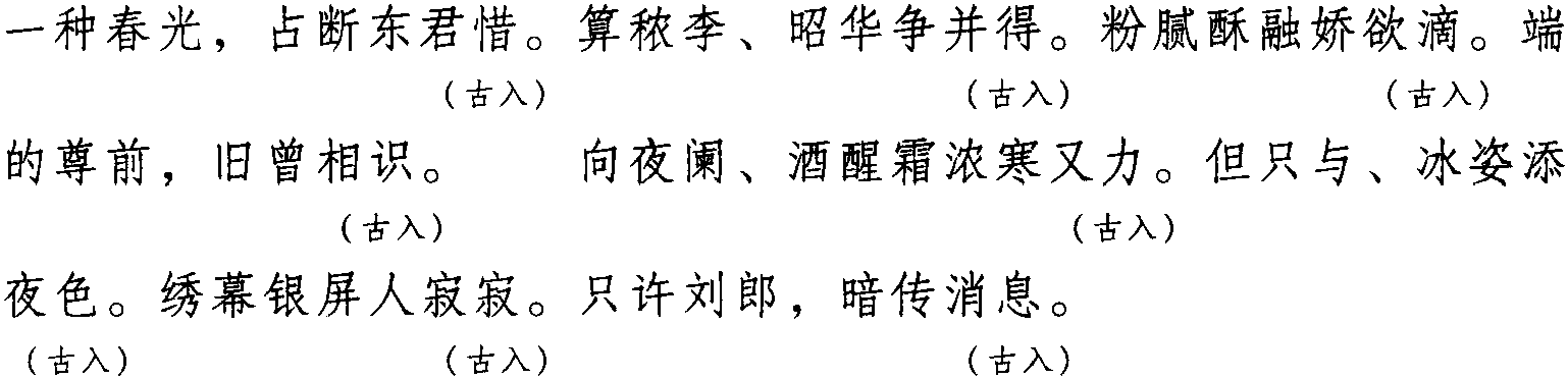 注: 本词例押古入声“职” “锡” 韵。因 “职” “锡” 在古韵中与 “力” “寂”同韵,而“力” “寂” 在现代韵中属“衣” 韵,故全调可押衣部“衣” 韵。