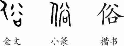 “俗”是形声字。金文、小篆都从人,谷声。隶变后楷书写作“俗”。