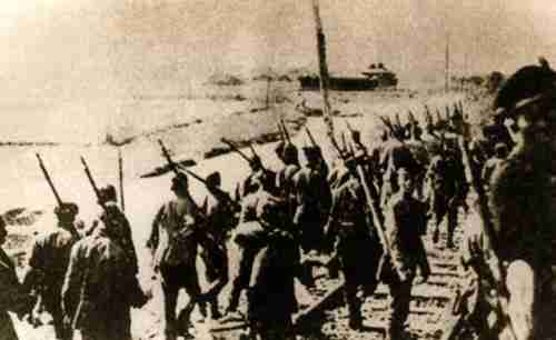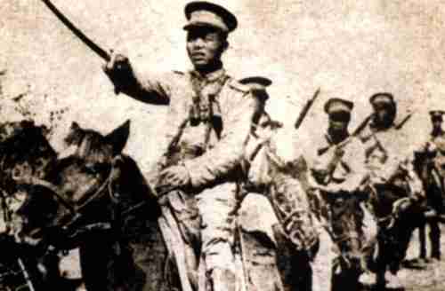 清内阁总理大臣袁世凯调派北洋军向革命军反扑。图为清军马队向汉口进发。