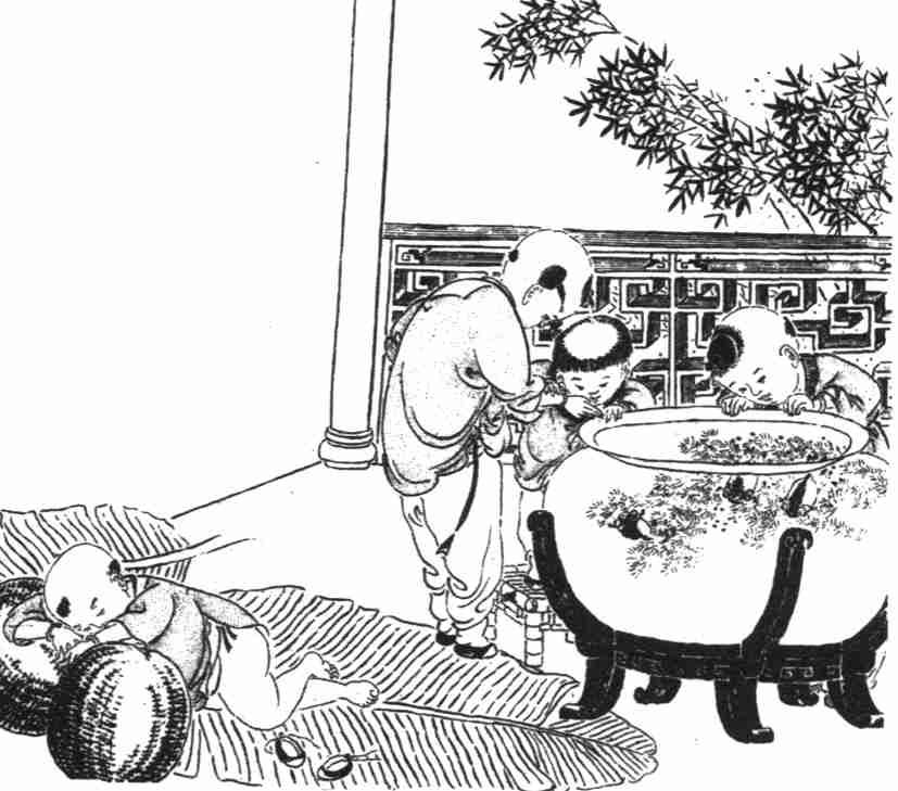 唐宰相张嘉贞想召郭元振为婿,让五女各执一丝线立于帷幕之后,叫郭元振牵线选妻,后牵着张的三女儿。宋黄庭坚,字鲁直,他为儿子向苏迈的女儿求婚,纳吉时,以彩缎缠绕的大缸作为礼物。