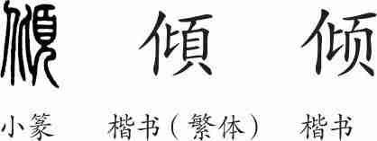 “倾”是会意兼形声字。小篆从人,从頃(表示偏侧),頃兼表声。隶变后楷书写作“傾”。汉字简化后写作“倾”。