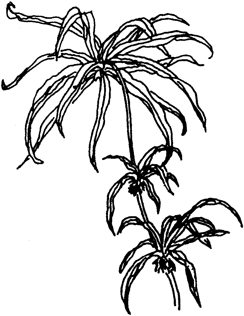 吊兰花莛呈匍匐枝状,先端发生叶簇,下有气生根群,成单独的幼小植株悬垂空间,而且悬垂空间的叶丛总是一层一层抽生花莛,像钓竿一样,其根、叶也皆似兰花,而得名吊兰,也叫钓兰、挂兰。