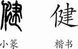 “健”是形声字。小篆从人,建声。隶变后楷书写作“健”。