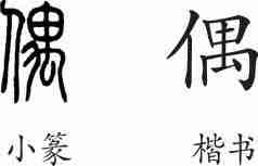 “偶”是形声字。小篆从人,禺声。隶变后楷书写作“偶”。