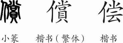 “偿”是形声字。从小篆字形来看,从人,賞声。隶变后楷书写作“償”。汉字简化后写作“偿”。