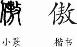 “傲”是形声字。小篆从人,敖声。隶变后楷书写作“傲”。