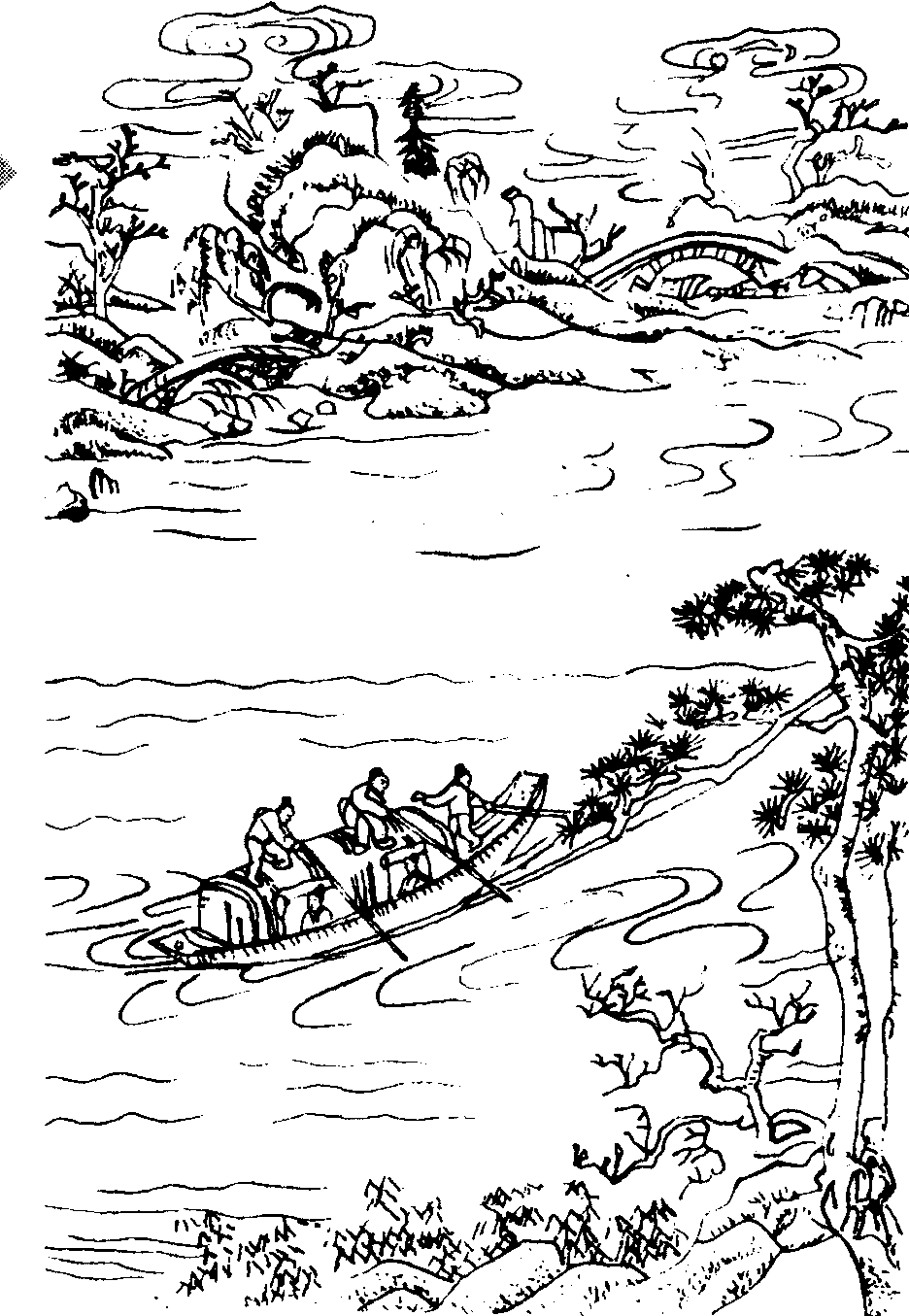 “危亭望极,草色天涯,叹鬓侵半苎。”草色又使他回忆起她衣衫上的颜色。猛然想起自己是头发半白的人,心情的伤惨就更难以禁受。下面,“暗点检”到“破鸾慵舞”,感情又进一步扩展。他身上还藏着她送的手帕,那上面既有别时的泪迹,也有欢情的唾痕。然而自己既是“鬓侵半苎”的人,像是迷路失意的凤凰,又好比懒于再舞破镜的鸾鸟了。“殷勤待写”到“弹入哀筝柱”,写自己的哀情不知何处抒发。“蓝霞”,即绿霞,此处指蓝天。“辽海”是远海,与地名无关。“沉过雁”,即鱼沉雁渺。结拍表示深沉的哀悼,并点出谱写这首长调的用意。“伤心千里江南,怨曲重招,断魂在否?”尽管我可以谱成一曲哀歌,像《楚辞·招魂》那样,招引她的灵魂,然而,她的灵魂在还是不在呢?要是在,又在什么地方呵?