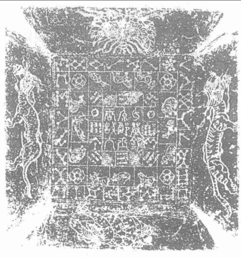 (二)二十八宿:二十八宿又名二十八舍或二十八星,舍或宿都有停留的意思。二十八宿之名最早见于战国时成书的《周礼》,其中记载有“二十有八星之位”“二十有八星之号”等,说明当时它已成为一个专有概念。二十八宿各名称最完整的记录也见于战国时成书的《吕氏春秋》、《逸周书》等典籍中。把天空划分为二十八个星区,古人最初是为了比较日、月、五星的运动,把它们作为观测的标志。东汉王充在《论衡·谈天》中说:“二十八宿为日月舍,犹地有邮亭,为长吏廨矣。”谈的也是这个问题。二十八宿的名称从角宿开始,自西向东排列,按照日、月视运动的方向,顺序是:东方七宿:角、亢、氐、房、心、尾、箕;北方七宿:斗、牛、女、虚、危、室、壁;西方七宿:奎、娄、胃、昴、毕、觜、参;南方七宿:井、鬼、柳、星、张、翼、轸。把黄道与赤道附近的星象划为二十八个不相同的部分,每一部分所包含的恒星都不止一颗,从各宿中选出一颗作为测量天体坐标的标准,称之为距星,古人对恒星位置的测定,都是以二十八宿距星作为标准的。二十八星在星空中分布疏密不均,其所占区域大小也相差很大,最大的井宿所占的赤经范围有33度左右,而最小的鬼宿,则只有1到2度之间。古人划分二十八宿的原则,现在众说纷纭,莫衷一是。一种观点认为是按月亮的恒星周期27.32天来取定的,月亮相对于恒星而言,每天自西向东运动,经过27.32天绕地球一周,又回到它初始的位置,一天经过一宿,故有二十八宿的划分。一种观点认为是按土星的恒星周期来取定的。古人认为土星的恒星周期为28年,它每年坐镇一宿(秦以前土星又被称为镇星),但土星的恒星周期不是28年,而是29年多。第三种说法四七相配说。其中四指四象或四陆,即东方苍龙,西方白虎,南方朱雀、北方玄武。将二十八宿分为四组,每组七宿,分别与东、西、南、北四个方位,青、红、白、黑四种颜色,龙、鸟、虎、蛇四种动物相配。具体说来,东方苍龙,包括角、亢、氐、房、心、尾、箕;南方朱雀,包括井、鬼、柳、星、张、翼、轸;北方玄武,包括斗、牛、女、虚、危、室、壁;西方白虎,包括奎、娄、胃、昴、毕、觜、参。四象的划分是以古代春分前后初昏时的天象作为依据的,根据它们的位置,古人有“前朱雀、后玄武、左青龙、右白虎”的说法,张衡曾描述过它们:“苍龙连蜷于左,白虎猛距于右,朱雀奋翼于前,灵龟圈首于后。”1978年在湖北随县发掘的战国早期曾侯乙墓中,出土的二十八宿漆箱盖,在斗字的四周配以二十八宿的名称,且有白虎与青龙的图像,说明古代二十八宿的划分与四象关系极大(同时说明四象的产生决不晚于二十八宿,或是同时,或是更早),因而这种说法是比较令人信服的。第四种观点则认为是古人按1+2+3+4+5+6+7=28这组数字取定的,疑点更多,不必细说。我国古代以观象授时来判定季节。二十八宿产生之后,它在编制历法、划分季节、划分二十四节气等方面发挥了积极的有效的作用,同时它为计算太阳、月亮、金木水火土五大行星乃至流星位置,提供了标准,这是我国古代天文学家在长期观测和实践基础上的一个重大的发明与创造。