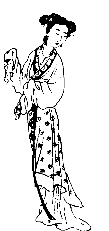 “笼鞋浅出鸦头袜”,“笼鞋”,指鞋面较宽的鞋子;鸦头袜,指古代妇女穿的分出足趾的袜子。这句的大意是说从笼鞋中微微地露出了鸦头袜。“知是凌波缥缈身”,“凌波微步,罗袜生尘” (曹植《洛神赋》),是形容她像“翩若惊鸿、婉若游龙”的洛神宓妃修饰得体,脚步轻盈。也暗示她有着像洛神“荣曜秋菊,华茂春松”的品格。