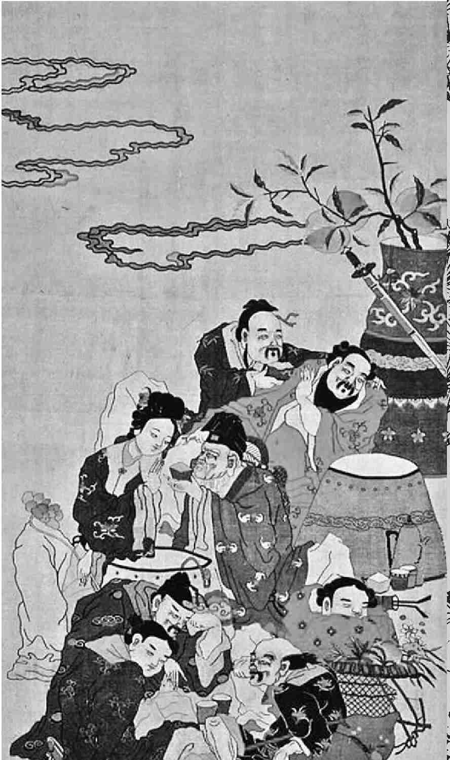 明代吴元泰《东游记》第四十八回讲道,八仙参加完蟠桃大会后,来到东海边上,停云观望。只见潮头汹涌,巨浪惊人。吕洞宾说:“今天我们每人用一件物体投在海面,踏着渡海,各显自己的神通怎么样?”大家都说好。于是,铁拐李就把自己的铁拐扔到海面,立在拐上,乘风逐浪地渡了起来。汉钟离把拂尘投在水里,张果老把纸驴投在水中,吕洞宾把箫管投在水中,而韩湘子用花篮,何仙姑用竹罩投水而渡。蓝采和把拍板投到水中,曹国舅把玉版投到水中而渡。八仙各自用自己的手段渡海,展示了各人的神通。不料东海龙王太子看上了蓝采和的拍板,强行夺去,以致惹起了八仙和龙宫的一场大战。