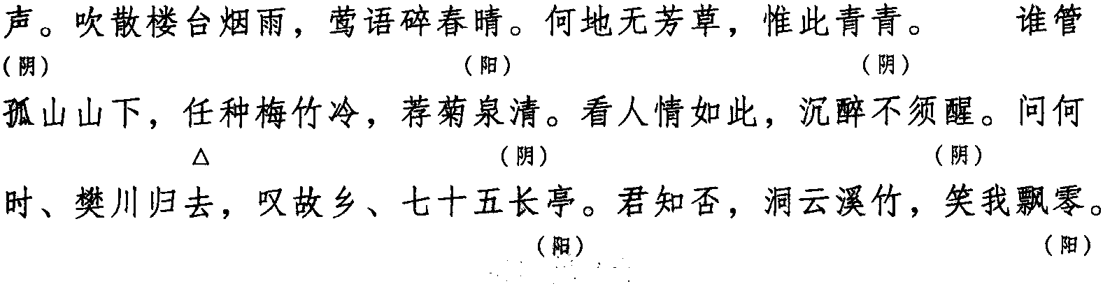 注:本词例押东部“声”韵。其中,“醒” 在古韵中与 “酊” 同韵,而“酊”在现代韵中属 “声” 韵,故“醒” 亦押“声” 韵。