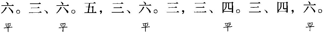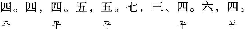 本格双片九十八字。全词同韵,平韵,韵字可阴平、可阳平。