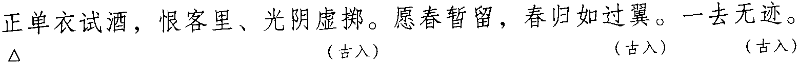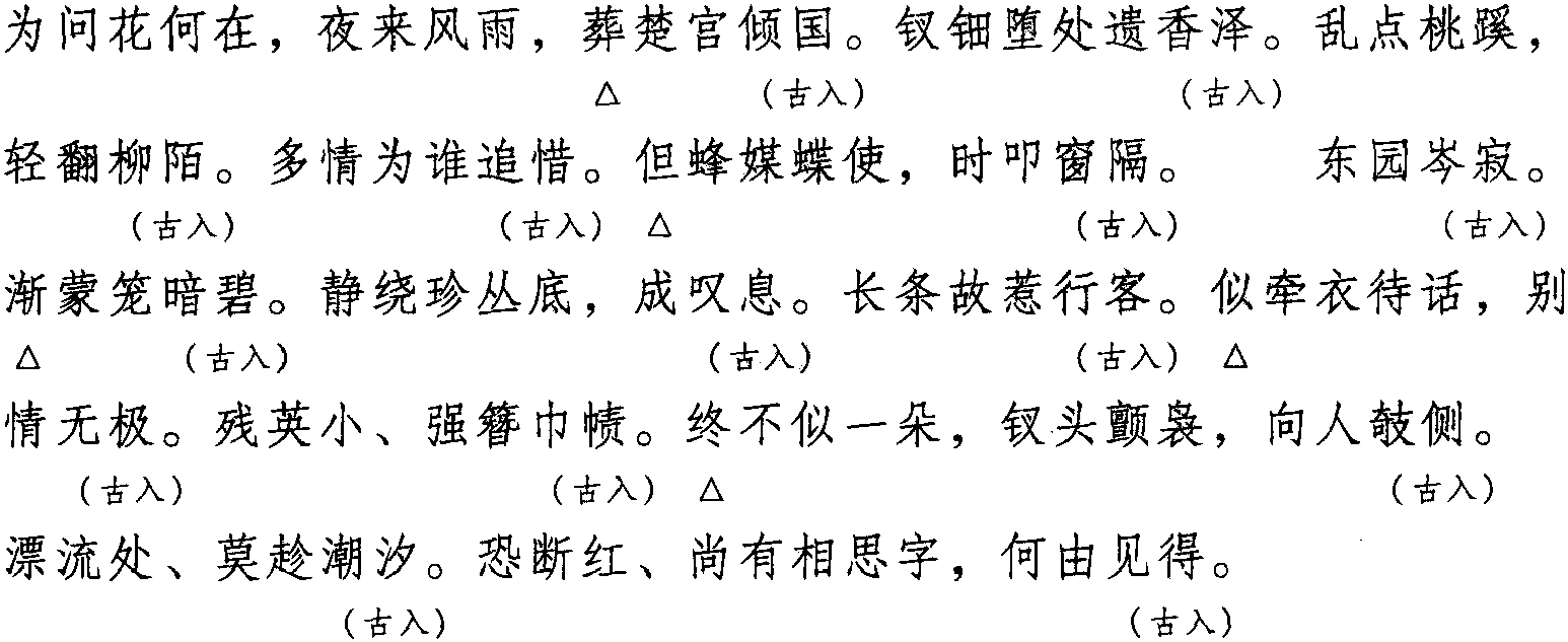 注: 本词例押古入声“陌” “锡” “职” 韵。因 “陌” “锡” “职” 在古韵中与“碧” “寂” “力”同韵,而“碧” “寂” “力” 在现代韵中属 “衣” 韵,故全调可押衣部“衣” 韵。