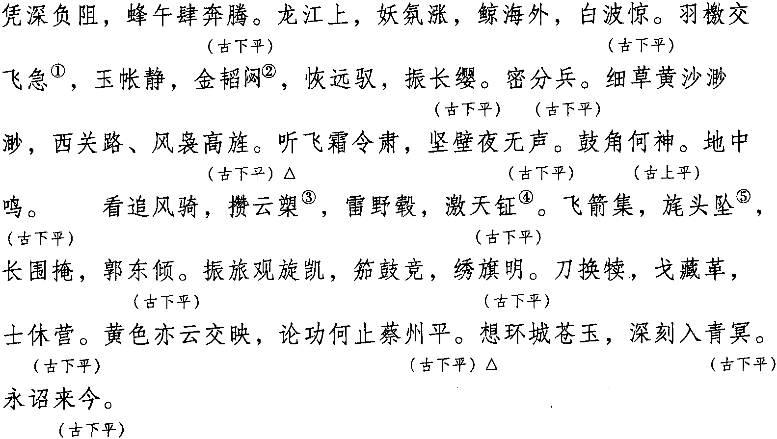 注: 一、本词例押古上平声“真”韵,古下平声“庚”青“蒸” “侵”韵,因“庚” “青” “蒸” 在现代韵中属 “声” 韵,“真” “侵” 与 “声” 属宽韵,故全调可押“声” 韵。