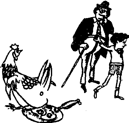 康拉德和叔叔只好徒步进入懒人国。一路上,他俩老是碰到忙忙碌碌、“咯咯” 叫着的母鸡。每只母鸡的后面,都拉着一个闪闪发亮的小煎盘。它们在路上窜来窜去,一见有人来,便马上站住,“咯咯、咯咯” 一个劲地往煎盘里下荷包蛋,有的还下煎蛋饼。可是,康拉德昂起头,摆摆手,连看都不看一眼。他实在吃得太饱了! 母鸡只好拉着煎盘,摇摇摆摆地钻进灌木丛中去。