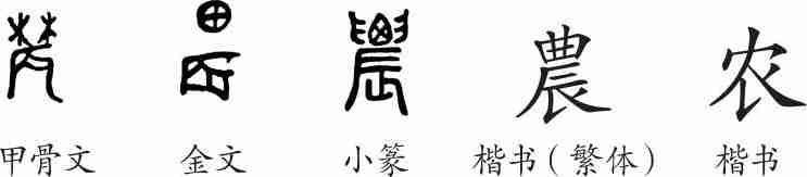 | 诗文 | 《农》字义,《农》字的字形演变,小篆隶书楷书写法《农》 |