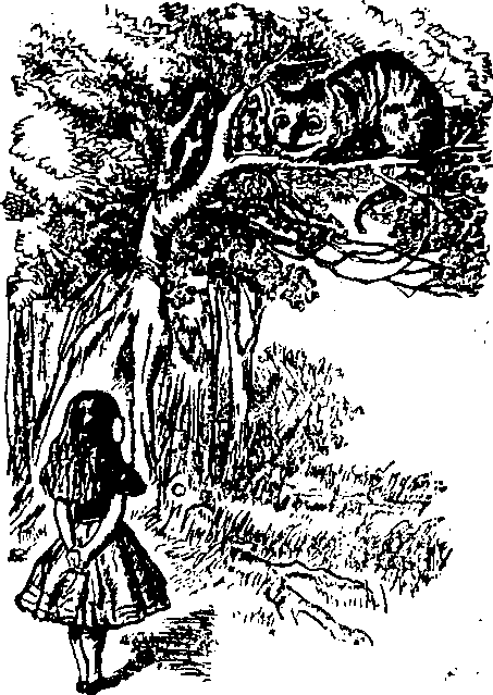 (艾丽丝在林子里吃了魔蘑菇,终于变得不高不矮,成了原来的样子。在林子里她看到一只会露齿笑的柴郡猫。人家告诉她,柴郡猫都会笑。)
