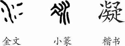 “凝”是形声兼会意字。金文从水从冫会意。小篆整齐化;异体改为从冫,疑声,疑兼表疑定之意。隶变后楷书写作“凝”。