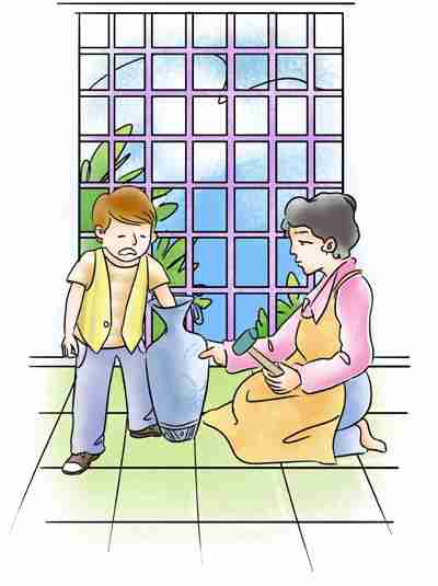 妈妈想帮儿子将手从花瓶中拉出来,可试来试去就是不行。看着儿子流泪的小脸,妈妈心疼坏了,马上找来锤子,小心地把花瓶敲碎了。