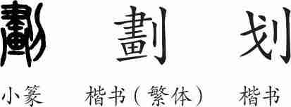 “划”是会意兼形声字。小篆从刀从畫会意,畫兼表声。隶变后楷书写作“劃”。汉字简化后写作“划”。