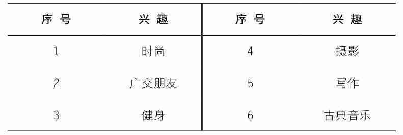 仍以陈晨为例,表6-1是她的兴趣列表。