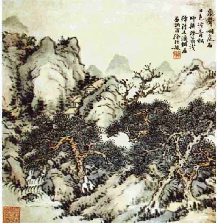 )画册计二十四开,不独形似清湘,尤能得其深厚灵秀。”胡佩衡作诗称曰:“意匠经营廿四图,入时装点费功夫。”我入藏的斗方真迹有姜筠(1847—1919)的《秋溪帆影》、徐行敏(1871—1932)的《苍山劲松》及现代申石伽的《层峦叠峰》,亦是喜其“意匠经营”之功。姜之作纯学耕烟,苍劲密蔚;徐之作层次繁密,幽邃秀邈;申之作笔法苍秀,蓊郁华滋,其画风在各自斗方中无不彰显无遗,而且小中见大,绝非草率应酬。在如此小的尺幅中开掘出妙趣盎然的意境,实可谓“大不盈尺,装点费难”。