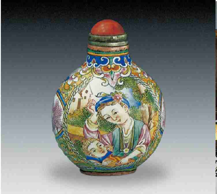 然而藏家必须明白,并不是所有的鼻烟壶都如此宝贵,都能卖到高昂的价钱,更不可能作为国礼赠给贵宾。凡文玩藏品,都是精品难得,鼻烟壶表现得尤为突出。同是天津天宝文化艺术品拍卖公司拍卖的鼻烟壶,1995 年秋季举行的大型拍卖会上,一对清代珐琅彩开光人物山水鼻烟壶以 10 万元人民币成交,而在 1996 年春季的一次小型拍卖会上,一只玛瑙鼻烟壶却卖到 60元,一只普通的玻璃鼻烟壶只卖到50 元。可见,鼻烟壶这种藏品,庸工易见,精品难得,两者价值和价格相差十分悬殊。现在,人们在某些古物市场和小古玩店常看到一些鼻烟壶,多数品位不高,新东西做工粗糙,一些旧东西也不是上品。这样的鼻烟壶其实并无多大收藏价值。