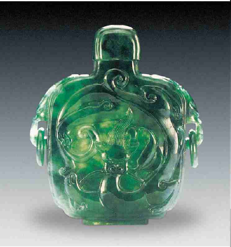 翡翠双龙狮纹鼻烟壶 (清)