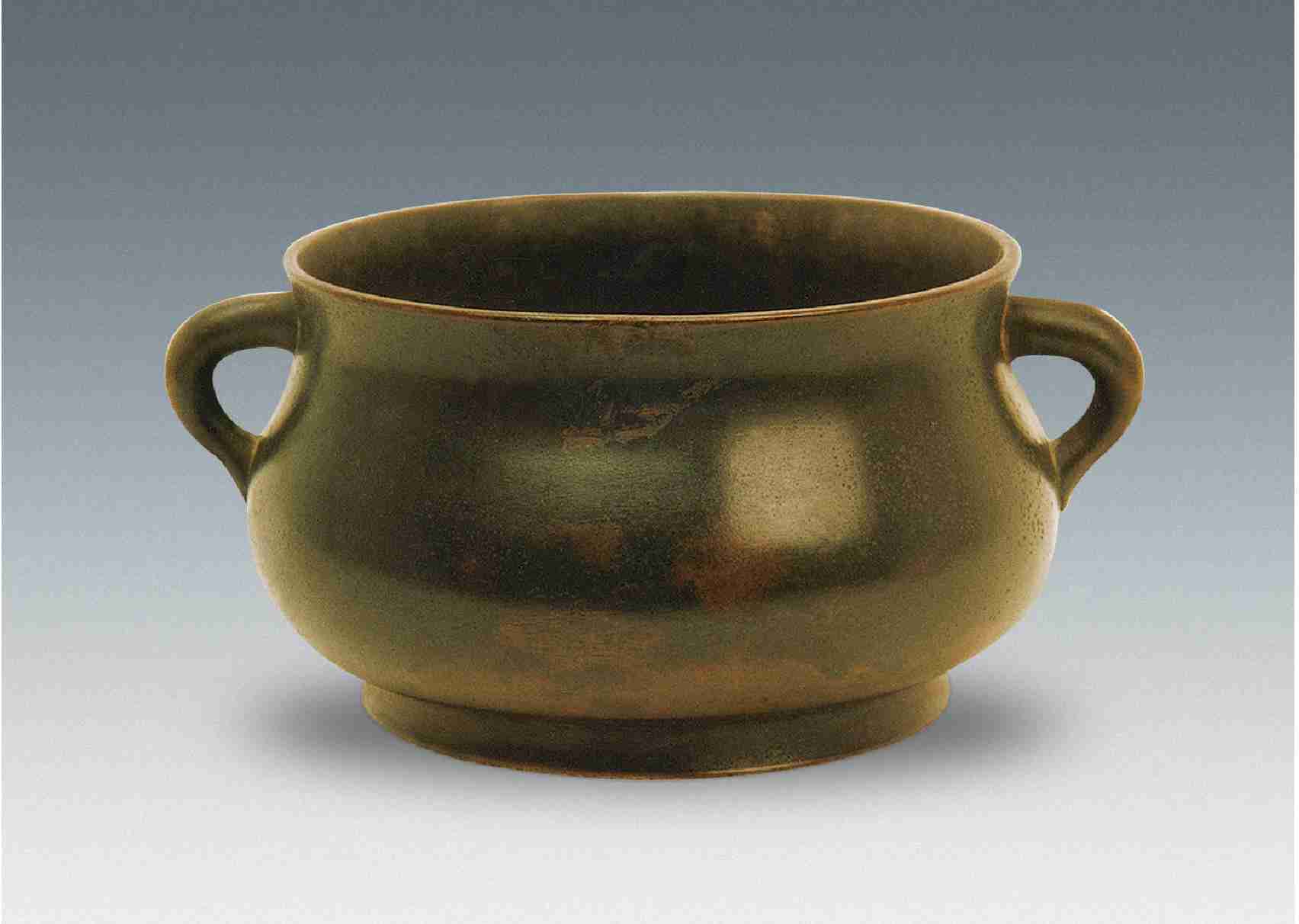 现在也有人为做出的包浆,涩而不滑手,其光洁圆浑、素净与真品差异甚大。还有一种高仿宣德炉,