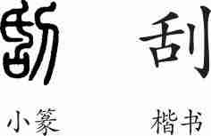 “刮”是形声字。小篆从刀,声。隶变后楷书写作“刮”。