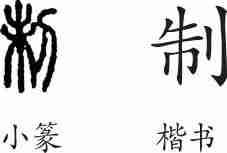 《说文·刀部》:“制,裁也。从刀,从未。未,物成有滋味,可裁断。一曰:止也。”(制,裁断。由刀、未会意。未,树木老成,即有滋味,可以裁断。另一义说:制是禁止。)