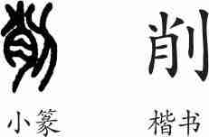 “削”是形声字。小篆从刀,肖声。隶变后楷书写作“削”。