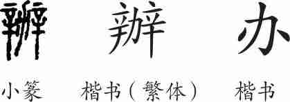 “办”是会意兼形声字。小篆从力从辡会意,辡兼表声。隶变后楷书写作“辦”。汉字简化后写作“办”。