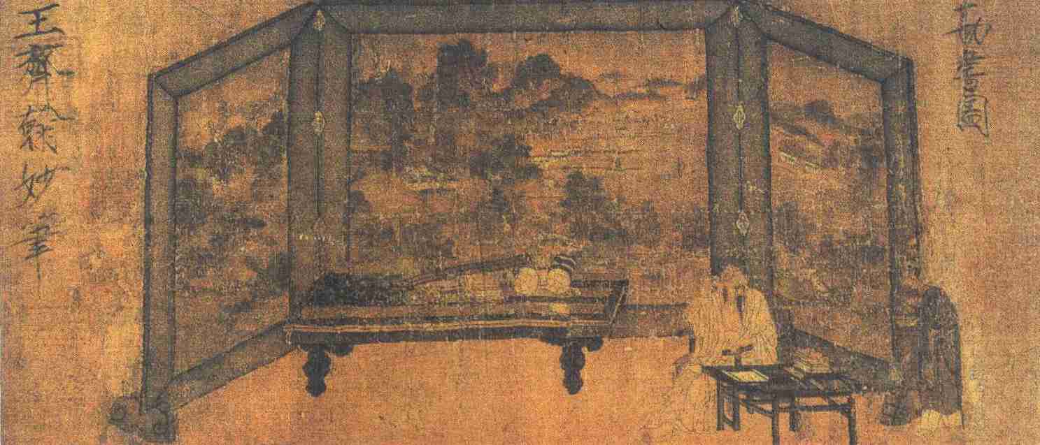 屏风画上,山峦起伏,云烟变幻,树木葱郁,一派江南景象。其表现方法,已完全改变了二李的勾勒皴擦加填彩,而是采用了写意的没骨画法。这是继展子虔的勾填法,二李的勾勒皴擦法以后出现的又一种青绿山水画的表现形式,这在山水画史上有一定地位。明末董其昌在图后跋文云:“挑耳图屏障画不用皴擦,唐时没骨设色山水也。”明张丑《清河书画舫》认为其“中间屏障间细山水全学王维”。王维以水墨山水画著称,也画过青绿山水,如《山阴图》卷即传为王维所作。但王维是否画过这种没骨青绿山水,尚无实物可证。故对于屏风上的山水画表现形式,是“全学王维”呢,还是王齐翰首创,尚有待进一步发现和研究。